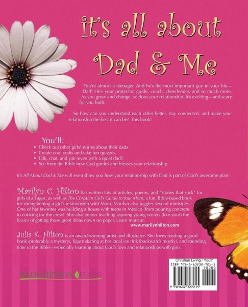 You're almost a teenager. And he's the most important guy in your life-Dad! He's your protector, guide, coach, cheerleader, and so much more. As you grow and change, so does your relationship. It's exciting-and scary for you both.So how can you understand each other better, stay connected, and make your relationship the best it can be? This book! You'll: . Check out other girls' stories about their dads . Create cool crafts and take fun quizzes . Talk, chat, and yak (even with a quiet dad!) . See from the Bible how God guides and blesses your relationship. It's All About Dad & Me will even show you how your relationship with Dad is part of God's awesome plan!