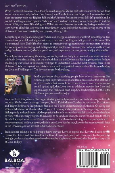 What if we loved ourselves more than we could imagine? We are told to love ourselves, but we don't know how or even why. What if we learned actual techniques that helped us love ourselves and align our energy with our Higher Self and the Universe for a more joyous life? It's possible, and it just takes willingness and practice. When we learn and use real tools, we are better able to surf the waves of life, and meet life with grace. When we learn how we are resisting loving ourselves and learn how to allow the love we are to flow through us, we utilize the buoyant, loving energy of the Universe to flow more smoothly and joyously through life. Everything is energy, including us! When our energy is in balance and flows smoothly, we feel harmonious, peaceful, and aligned with our true nature, our Higher Self, part of the Universe. This is our natural state. Daily life often seems to interrupt our connection with our true state of being. By working with our energy and metaphysical principles, we can remember who we really are; we realign with our true self, which is pure Love, and experience the ease, peace, and joy that results. Metaphysics is about using the energy we are beyond our body in a practical way while we are in this body. By understanding that we are both human and Divine and having compassion for how challenging it is to live in this world, we begin to understand Love, the most powerful force in the Universe. This is not mysterious; this is very real and very available to each of us. The keys to healing are Love and Willingness. The keys are yours for the taking.