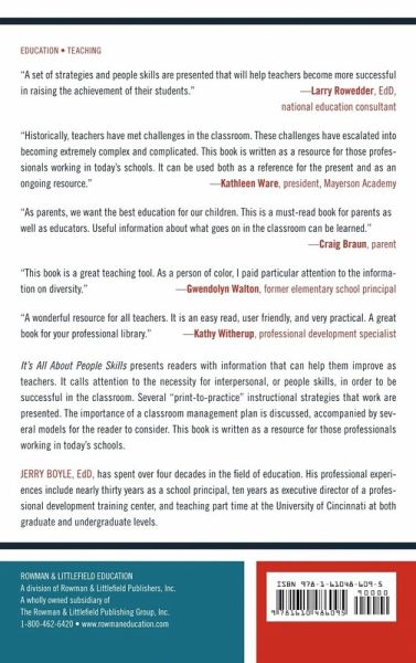It's All About People Skills provides teachers with information upon which they that can improve themselves in the classroom, calling to attention the necessity for interpersonal skills in order be successful in front of the classroom. Offering educators 'print-to-practice' instructional strategies, models of classroom management plans, and planning modules, It's All About People Skills will not only improve teachers' instructional delivery, and therefore engage more students in a positive school culture, but will also prepare teachers to meet the challenges of contemporary schooling-such as adapting to technology, working with home-schooled children, and addressing school violence.