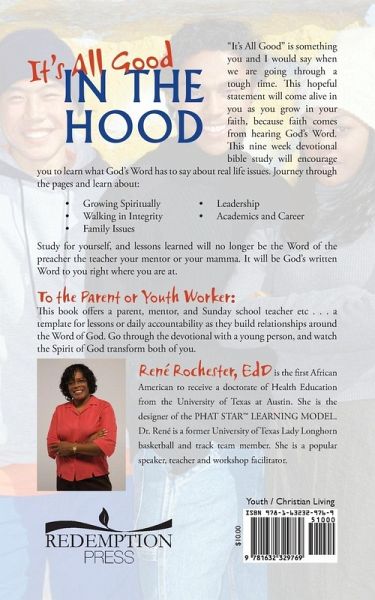 "It's All Good" is something you and I would say when we are going through a tough time. This hopeful statement will come alive in you as you grow in you faith, because faith comes from hearing God's Word. This nine week devotional bible study will encourage you to learn what God's Word has to say about real life issues. Journey through the pages and learn about: . growing spiritually . walking in integrity . family issues . leadership . and academics and career Study for yourself, and lessons learned will no longer be the Word of the preacher the teacher your mentor or your mamma. It will be God's written Word to you right where you are at. To the parent or youth worker: This book offers a parent, mentor, and Sunday school teacher etc. a template for lessons or daily accountability as they build relationships around the Word of God. Go through the devotional with a young person, and watch the Spirit of God transform you.