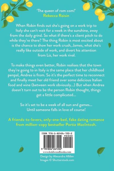 The BRAND NEW laugh-out-loud, love triangle summer romantic comedy from MILLION-COPY BESTSELLER Portia MacIntosh! When Robin finds out she's going on a work trip to Italy she can't wait for a week away in the sunshine, away from the daily grind. So what if there's a client pitch to do while they're there? The thing Robin is most excited about is the chance to show her work crush, James, what she's really like outside of work, and divert his attention from Liz, her work rival. To make things even better, Robin realises that the town they're going to in Italy is the same place that her childhood penpal, Andrea is from. So it's the perfect time to re-connect and finally meet her old friend over some delicious Italian food and wine (between work obviously...) But when Andrea doesn't turn out to be the person Robin thought, things get a little complicated... So it's set to be a week of all sun and games... Until someone falls in love of course! A friends-to-lovers, only-one-bed, fake dating romance from million-copy bestseller Portia MacIntosh. Praise for Portia MacIntosh: 'Smart, funny and always brilliantly entertaining, every book from Portia becomes my new favourite rom com.' Shari Low 'I laughed, I cried - I loved it.' Holly Martin 'The queen of rom com!' Rebecca Raisin 'This book made me laugh and kept me turning the pages.' Mandy Baggot 'A fun, fabulous 5 star rom com!' Sandy Barker on Your Place or Mine? 'Loved the book, it's everything you expect from the force that is Portia! A must read' Rachel Dove on Your Place or Mine? 'Fun and witty. Pure escapism!' Laura Carter on Fake It Or Leave It 'A hilarious, roaringly fun, feel good, sexy read. I LOVED it!' Holly Martin on Honeymoon For One 'A heartwarming, fun story, perfect for several hours of pure escapism.' Jessica Redland on Honeymoon for One