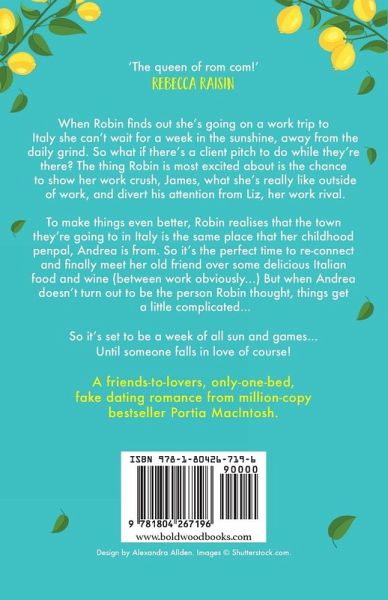 The BRAND NEW laugh-out-loud, love triangle summer romantic comedy from MILLION-COPY BESTSELLER Portia MacIntosh! When Robin finds out she's going on a work trip to Italy she can't wait for a week away in the sunshine, away from the daily grind. So what if there's a client pitch to do while they're there? The thing Robin is most excited about is the chance to show her work crush, James, what she's really like outside of work, and divert his attention from Liz, her work rival. To make things even better, Robin realises that the town they're going to in Italy is the same place that her childhood penpal, Andrea is from. So it's the perfect time to re-connect and finally meet her old friend over some delicious Italian food and wine (between work obviously...) But when Andrea doesn't turn out to be the person Robin thought, things get a little complicated... So it's set to be a week of all sun and games... Until someone falls in love of course! A friends-to-lovers, only-one-bed, fake dating romance from million-copy bestseller Portia MacIntosh. Praise for Portia MacIntosh: 'Smart, funny and always brilliantly entertaining, every book from Portia becomes my new favourite rom com.' Shari Low 'I laughed, I cried - I loved it.' Holly Martin 'The queen of rom com!' Rebecca Raisin 'This book made me laugh and kept me turning the pages.' Mandy Baggot 'A fun, fabulous 5 star rom com!' Sandy Barker on Your Place or Mine? 'Loved the book, it's everything you expect from the force that is Portia! A must read' Rachel Dove on Your Place or Mine? 'Fun and witty. Pure escapism!' Laura Carter on Fake It Or Leave It 'A hilarious, roaringly fun, feel good, sexy read. I LOVED it!' Holly Martin on Honeymoon For One 'A heartwarming, fun story, perfect for several hours of pure escapism.' Jessica Redland on Honeymoon for One 'A feel good, funny and well written book. I read it in 2 days and enjoyed every second!' A.L. Michael on Honeymoon for One 'Super-romantic and full of festive spirit. I loved it!' Mandy Baggot on Stuck On You