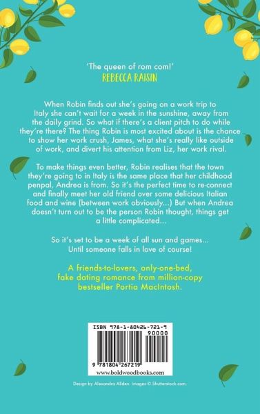 The BRAND NEW laugh-out-loud, love triangle summer romantic comedy from MILLION-COPY BESTSELLER Portia MacIntosh! When Robin finds out she's going on a work trip to Italy she can't wait for a week away in the sunshine, away from the daily grind. So what if there's a client pitch to do while they're there? The thing Robin is most excited about is the chance to show her work crush, James, what she's really like outside of work, and divert his attention from Liz, her work rival. To make things even better, Robin realises that the town they're going to in Italy is the same place that her childhood penpal, Andrea is from. So it's the perfect time to re-connect and finally meet her old friend over some delicious Italian food and wine (between work obviously...) But when Andrea doesn't turn out to be the person Robin thought, things get a little complicated... So it's set to be a week of all sun and games... Until someone falls in love of course! A friends-to-lovers, only-one-bed, fake dating romance from million-copy bestseller Portia MacIntosh. Praise for Portia MacIntosh: 'Smart, funny and always brilliantly entertaining, every book from Portia becomes my new favourite rom com.' Shari Low 'I laughed, I cried - I loved it.' Holly Martin 'The queen of rom com!' Rebecca Raisin 'This book made me laugh and kept me turning the pages.' Mandy Baggot 'A fun, fabulous 5 star rom com!' Sandy Barker on Your Place or Mine? 'Loved the book, it's everything you expect from the force that is Portia! A must read' Rachel Dove on Your Place or Mine? 'Fun and witty. Pure escapism!' Laura Carter on Fake It Or Leave It 'A hilarious, roaringly fun, feel good, sexy read. I LOVED it!' Holly Martin on Honeymoon For One 'A heartwarming, fun story, perfect for several hours of pure escapism.' Jessica Redland on Honeymoon for One