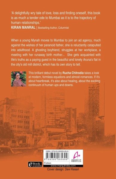 Mumbai's historic mill hub of Lalbaug finally gets its own mythology in this sensitive coming-of-age story. Rucha Chitrodia's long-time finger on the city's pulse underpins this book'. - Bachi Karkaria - Editor, Columnist, Author 'A delightfully wry tale of love, loss and finding oneself, this book is as much a tender ode to Mumbai as it is to the trajectory of human relationships.' - Kiran Manral - Bestselling Author, Columnist When a young Mynah moves to Mumbai to join an ad agency, much against the wishes of her paranoid father, she is reluctantly catapulted into adulthood. A ghosting boyfriend, struggles at her workplace, a meeting with her runaway birth mother... She gets acquainted with life's truths as a paying guest in the beautiful and lonely Aruna's flat in the city's old mill district, which has its own story to tell. This brilliant debut novel by Rucha Chitrodia takes a look at modern, formless equations and almost-romances. If it's about heartbreak, it's also about healing, about the exciting continuum of human ups and downs.