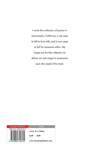 I wrote this collection of poems in Sacramento, California, a city easy to fall in love with, and in turn easy to fall for someone within. My hopes are for this collection to deliver art and magic to someone's soul who needs it the most.