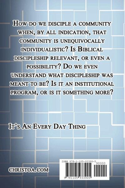 How do we disciple a community when, by all indication, that community is unequivocally individualistic? Is Biblical discipleship relevant, or even a possibility? Do we even understand what discipleship was meant to be? Is it an institutional program, or is it something more? It's An Every Day Thing