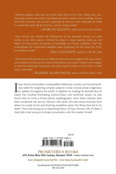 New one-volume autobiography spans Asimov's life for the first time!As one of the most gifted and prolific writers of the twentieth century, Isaac Asimov became legendary for his inexhaustible creativity, wide-ranging intellectual curiosity, and talent for explaining complex subjects in clear, concise prose. While regaling his readers with an incredible opus of almost five hundred entertaining and illuminating science fiction and nonfiction books, he also found time to write a three-volume autobiography. Now these volumes have been condensed into one by Asimov's wife, Janet, who also shares excerpts from letters he wrote to her. Together these writings provide an intimate portrait of a creative genius whose love of learning and playing with ideas is evident on every page. Reading this autobiography is like sitting down with Isaac Asimov and experiencing his witty, engaging, and brilliant personality firsthand. We are treated to many marvelous stories about his upbringing in Depression-era Brooklyn, his early fascination with the new science fiction pulp magazines, the thrill of his first published story, the creation of his well-known story "Nightfall," the genesis of the Foundation series, and the evolution of his creative life as a writer. He also reveals his inner thoughts about and experiences with various luminaries in science and science fiction. Above all, Asimov's autobiography conveys unbounded enthusiasm for his craft, the infectious joy of learning and creating, complete intellectual honesty, his strong humanist convictions, and his infinite fund of good humor and optimism even at the end of his life - all told in the lively clear writing style that was his trademark. Although Janet Jeppson Asimov concludes this work with a shocking revelation about her husband's death, the volume is clearly intended as a celebration - as the title suggests - of a wonderful, creative life. As a poignant coda to this work, Janet has appended one short story that was Isaac's favorite, and his 400th essay on this thoughts about science.
