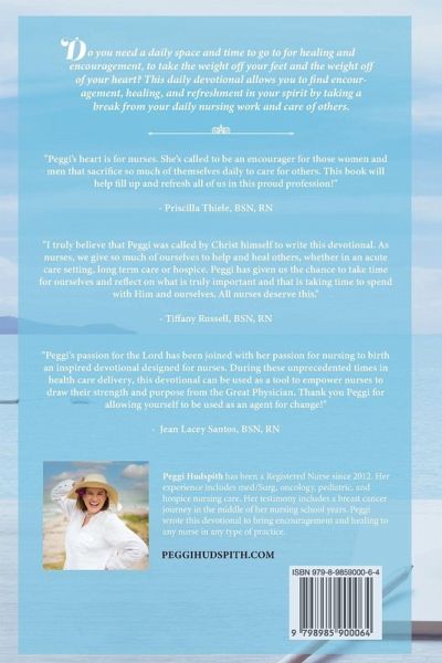 Do you need a daily space and time to go to for healing and encouragement, to take the weight off your feet and the weight off of your heart? This daily devotional allows you to find encouragement, healing, and refreshment in your spirit by taking a break from your daily nursing work and care of others.