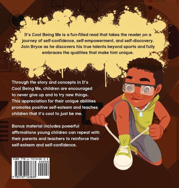 It's Cool Being Me is a fun-filled read that takes the reader on a journey of self-confidence, self-empowerment, and self-discovery. Join Bryce as he discovers his true talents beyond sports and fully embraces the qualities that make him unique. Through the story and concepts in It's Cool Being Me, children are encouraged to never give up and to try new things. This appreciation for their unique abilities promotes positive self-esteem and teaches children that it's cool to just be me. Bonus material includes powerful affirmations young children can repeat with their parents and teachers to reinforce their self-esteem and self-confidence.