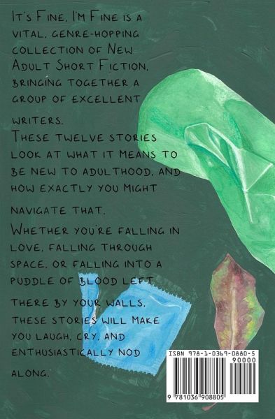 It's Fine, I'm Fine is a vital, genre-hopping collection of New Adult Short Fiction, bringing together a group of excellent writers. These twelve stories look at what it means to be new to adulthood, and how exactly you might navigate that. Whether you're falling in love, falling through space, or falling into a puddle of blood left there by your walls, these stories will make you laugh, cry, and enthusiastically nod along.