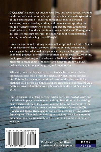 It's Just a Ball is a book for anyone who lives and loves soccer. Founded on the author's unique set of experiences, it is a personal exploration of the beautiful game - delivered through a series of personal accounts, broader stories, studies, and interviews - capturing the unique journeys of players, coaches, and people from around the world who have found success in unconventional ways. Throughout it all, one key message emerges: the importance of not just playing soccer, but of embracing it as a lifestyle! From the streets and training centers of Europe and the United States to the beaches of Brazil, the book explores not only what makes soccer great, but what makes a great soccer player. Sections include deliberate practice, the value of repetition and rehearsal, 10,000 hours, the impact of culture, and development facilities. It's Just a Ball attempts to make sense of theories and concepts on how a player makes the leap from good to great, and great to elite. Whether you are a player, coach, or a fan, each chapter explores different lessons pulled from the pitch and which can be applied to life. This book challenges traditional learning theories, and links methods used across disciplines and artforms back to soccer. It's Just a Ball is a must-read addition to any bookshelf on the world's universal sport.