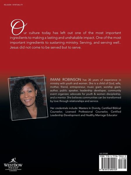 Imani Robinson has 20 years of experience in ministry with youth and women. She is a child of God, wife, mother, friend, entrepreneur, music giant, worship giant, author, public speaker, leadership developer, community event organizer, advocate for youth & women discipleship, and a mentor. She believes communities can be transformed by love through relationships and service.