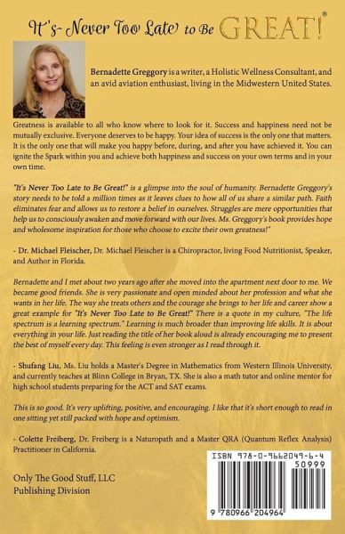 It's Never Too Late to Be Great!Finding the Spark Within You That Sets You on a Path to Greatness How to rediscover your passion and have the courage to live your dreams, no matter how many times you've started over... You are the changemaker in your life, the one with the power to transform or stay stagnant. Even if you may wish at times that someone else could be in the driver's seat, you have to face the facts: if you want to live a new, transformed life, you must be the one to take action. This takes trust in yourself and the Universe, but more than that, it requires you to be open to risk-taking. Things won't change if you don't and, armed with the new insight you'll find within these pages, you'll be inspired and empowered to make those changes. In this book, you will discover: ¿ Reflections to help you recognize the life scripts you've been following and how they can be changed to meet your true desires ¿ How to prioritize yourself and your needs in a world that makes it easy to table your dreams for later ¿ How to overcome fear despite the unknowns that lie ahead of you and face challenges with grace ¿ Insight gained from real-world experience that will help you draw your own conclusions about the journey ahead of you ¿ Gentle reminders that you are already on the right path, even if it can be difficult to see the way forward at times ¿ Guidance for creating the life you want through mindset shifts, such as learning to say "thank you" more than "please" And much more. Throughout your life, you've overcome challenges and taken on new responsibilities that can sometimes cause you to put your dreams on the back burner. But how long are you willing to wait to pursue your passion? What would change if you made the decision, right now, to live your life as if your dreams have already been realized? You hold the power in your hands.
