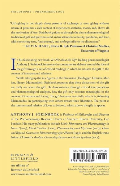 Leading phenomenologist Tony Steinbock intervenes in contemporary discussion around the concept of the gift, providing a critical reading of the main figures on the problem of the gift and offering a new perspective on the gift, situating it in the emotional sphere, specifically in relation to loving and humility.