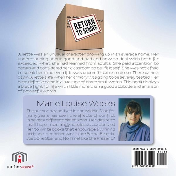 Juliette was an unusual character growing up in an average home. Her understanding about good and bad and how to deal with both far exceeded what she had learned from adults. She paid attention to details and considered her classroom to be life itself. She was not afraid to speak her mind even if it was uncomfortable to do so. There came a day in Juliette's life when her armory was going to be severely tested. Her best defense came in a package of three small words. This book displays a brave fight for life with little more than a good attitude and an arson of powerful words.