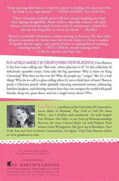 In a world where eye cream is made from placenta, Gina Barreca is the lone voice calling out "But wait, whose placenta is it?" In this collection of deliciously quotable essays, Gina asks the big questions: Why is there no King Charming? Why does no bra ever fit? Why do people say "cougar" like it's a bad thing? Why do we call it a glass ceiling when it's just a thick layer of men? Barreca packs a hilarious punch while gleefully rejecting emotional torture, embracing limitless laughter, and showing women how they can conquer the world with good friends ("It's not that diamonds are a girl's best friend, but a girl's best friends are diamonds"), sharp wit, great shoes, and not a single worry about VPLs.