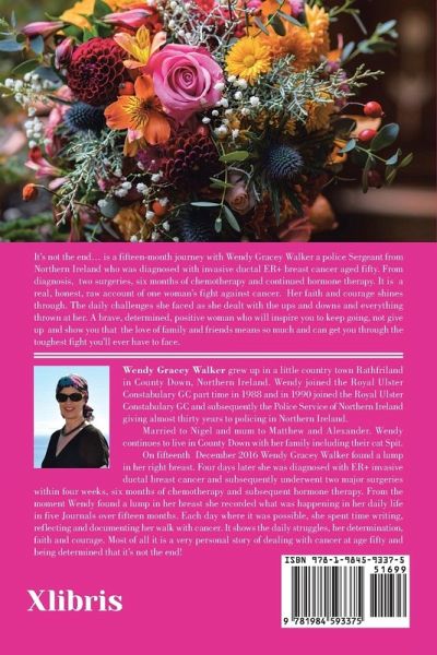 It's not the end... is a fifteen-month journey with Wendy Gracey Walker a police Sergeant from Northern Ireland who was diagnosed with invasive ductal ER+ breast cancer aged fifty. From diagnosis, two surgeries, six months of chemotherapy and continued hormone therapy. It is a real, honest, raw account of one woman's fight against cancer. Her faith and courage shines through. The daily challenges she faced as she dealt with the ups and downs and everything thrown at her. A brave, determined, positive woman who will inspire you to keep going, not give up and show you that the love of family and friends means so much and can get you through the toughest fight you'll ever have to face.