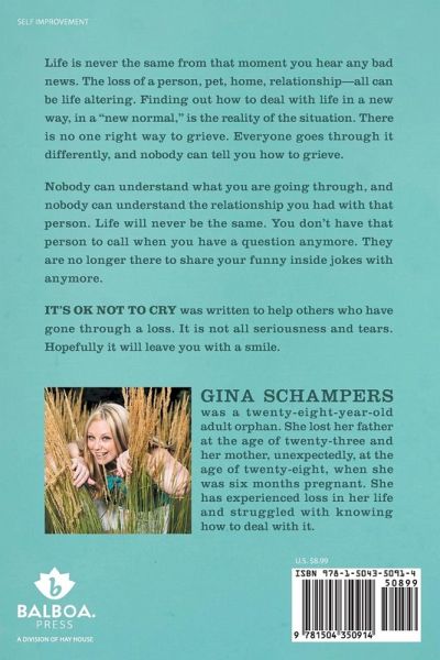 Life is never the same from that moment you hear any bad news. The loss of a person, pet, home, relationship-all can be life altering. Finding out how to deal with life in a new way, in a "new normal," is the reality of the situation. There is no one right way to grieve. Everyone goes through it differently, and nobody can tell you how to grieve. Nobody can understand what you are going through, and nobody can understand the relationship you had with that person. Life will never be the same. You don't have that person to call when you have a question anymore. They are no longer there to share your funny inside jokes with anymore. It's Ok Not to Cry was written to help others who have gone through a loss. It is not all seriousness and tears. Hopefully it will leave you with a smile.
