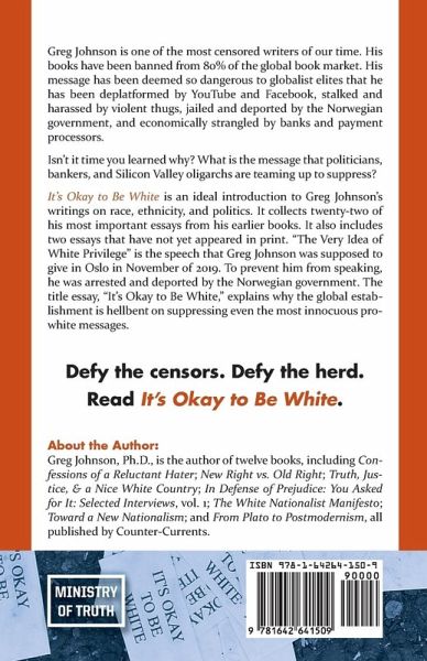 Greg Johnson is one of the most controversial and censored writers of our time. His books have been banned from 80% of the global book market. His message has been deemed so dangerous to globalist elites that he has been deplatformed by YouTube and Facebook, stalked and harassed by violent thugs, jailed and deported by the Norwegian government, and economically strangled by banks and payment processors. Isn’t it time you learned why? What is the message that politicians, bankers, and Silicon Valley oligarchs are teaming up to suppress? It’s Okay to Be White is an ideal introduction to Greg Johnson’s writings on race, ethnicity, and politics. It collects twenty-two of his most important essays from his earlier books. It also includes two essays that have not yet appeared in print. "The Very Idea of White Privilege" is the speech that Greg Johnson was supposed to give in Oslo in November of 2019. To prevent him from speaking, he was arrested and deported by the Norwegian government. The title essay, "It’s Okay to Be White," explains why the global establishment is hellbent on suppressing even the most innocuous pro-white messages. Defy the censors. Defy the herd. Read It’s Okay to Be White.