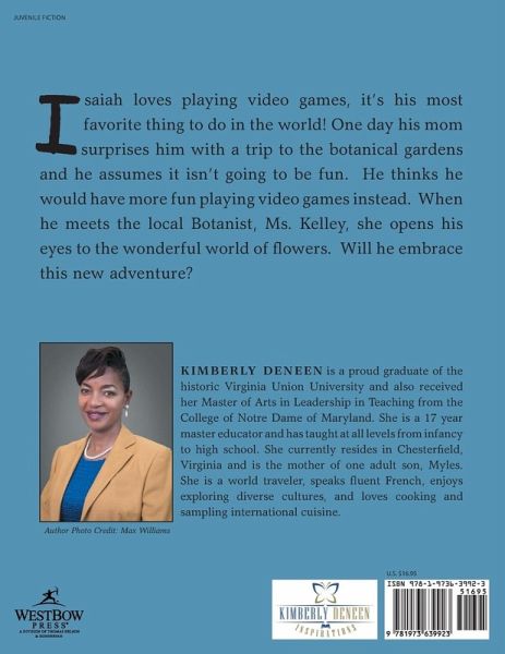 Isaiah loves playing video games, it's his most favorite thing to do in the world! One day his mom surprises him with a trip to the botanical gardens and he assumes it isn't going to be fun. He thinks he would have more fun playing video games instead. When he meets the local Botanist, Ms. Kelley, she opens his eyes to the wonderful world of flowers. Will he embrace this new adventure?