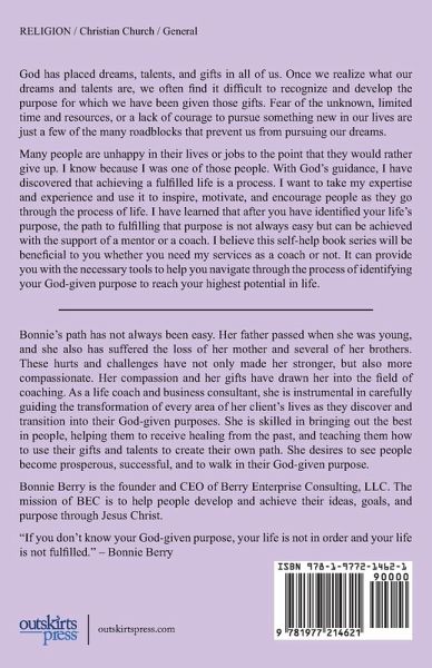 God has placed dreams, talents, and gifts in all of us. Once we realize what our dreams and talents are, we often find it difficult to recognize and develop the purpose for which we have been given those gifts. Fear of the unknown, limited time and resources, or a lack of courage to pursue something new in our lives are just a few of the many roadblocks that prevent us from pursuing our dreams. Many people are unhappy in their lives or jobs to the point that they would rather give up. I know because I was one of those people. With God's guidance, I have discovered that achieving a fulfilled life is a process. I want to take my expertise and experience and use it to inspire, motivate, and encourage people as they go through the process of life. I have learned that after you have identified your life's purpose, the path to fulfilling that purpose is not always easy but can be achieved with the support of a mentor or a coach. I believe this self-help book series will be beneficial to you whether you need my services as a coach or not. It can provide you with the necessary tools to help you navigate through the process of identifying your God-given purpose to reach your highest potential in life.