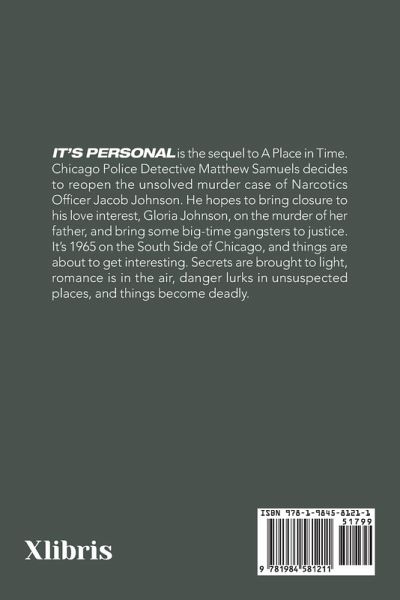 IT'S PERSONAL is the sequel to A Place in Time. Chicago Police Detective Matthew Samuels decides to reopen the unsolved murder case of Narcotics Office Jacob Johnson. He hopes to bring closure to his love interest, Gloria Johnson, on the murder of her father, and bring some big-time gangsters to justice. It's 1965 on the South Side of Chicago, and things are about to get interesting. Secrets are brought to light, romance is in the air, danger lurks in unsuspected places, and things become deadly.