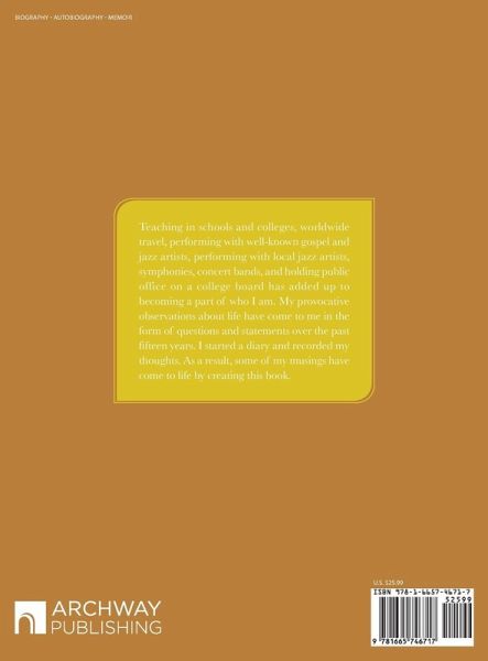 Teaching in schools and colleges, worldwide travel, performing with well-known gospel and jazz artists, performing with local jazz artists, symphonies, concert bands, and holding public office on a college board has added up to becoming a part of who I am. My provocative observations about life have come to me in the form of questions and statements over the past fifteen years. I started a diary and recorded my thoughts. As a result, some of my musings have come to life by creating this book.