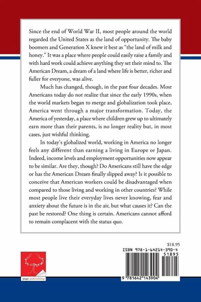 Since the end of World War II, most people around the world regarded the United States as the land of opportunity. The baby boomers and Generation X knew it best as "the land of milk and honey." It was a place where people could easily raise a family and with hard work could achieve anything they set their mind to. The American Dream, a dream of a land where life is better, richer and fuller for everyone, was alive. Much has changed, though, in the past four decades. Most Americans today do not realize that since the early 1990s, when the world markets began to merge and globalization took place, America went through a significant transformation. Today, the America of yesterday, a place where children grew up to ultimately earn more than their parents, is no longer reality but, in most cases, just wishful thinking. In today's globalized world, working in America no longer feels any different than earning a living in Europe or Japan. Indeed, income levels and employment opportunities now appear to be similar. Are they, though? Do Americans still have the edge or has the American Dream finally slipped away? Is it possible to conceive that American workers could be disadvantaged when compared to those living and working in other countries? While most people live their everyday lives never knowing, one thing is clear. Recently, political catchphrases such as "Make America Great Again," deeply resonated with frustrated Americans on both sides of the political divide, more so than election pollsters and the media anticipated during the 2016 presidential election. Undoubtedly, anxiety about the future is in the air, but what causes it? Can the past be restored? One thing is certain. Americans cannot afford to remain complacent with the status quo.