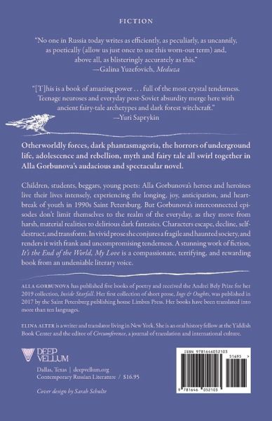 "Otherworldly forces, dark phantasmagoria, the horrors of underground life crossed with mythical fairytales, all swirl in Alla Gorbunova's audacious and spectacular novel. Children, students, beggars, young poets; Alla Gorbunova's heroes and heroines live their lives intensively, balancing between longing and euphoria in their lives in St. Petersburg. But Gorbunova's stories are far from everyday life: she looks at a fragile and dangerous reality with uncompromising tenderness, above all capable of transforming her characters"--