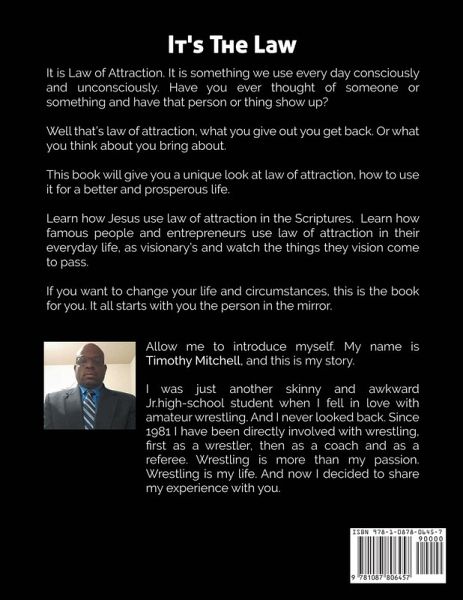 What is the LAW? It is Law of Attraction. It is something we use every day consciously and unconsciously. Have you ever thought of someone or something and have that person or thing show up? Well that’s law of attraction, what you give out you get back. Or what you think about you bring about. This book will give you a unique look at law of attraction, how to use it for a better and prosperous life. Learn how Jesus use law of attraction in the Scriptures. Learn how famous people and entrepreneurs use law of attraction in their everyday life, as visionary’s and watch the things they vision come to pass. If you want to change your life and circumstances, this is the book for you. It all starts with you the person in the mirror. Make That Change....