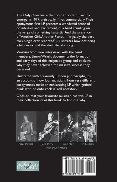 The Only Ones were the most important band to emerge in 1977, artistically if not commercially. Their eponymous first LP presents a wonderful sense of possibilities and excitement, of a band standing on the verge of something fantastic. And the presence of 'Another Girl, Another Planet' - 'arguably the best rock single ever recorded' - illustrates how not being a hit can extend the shelf life of a song. Working from new interviews with the band members, Simon Wright documents the formation and early days of this enigmatic group and explains why they never achieved the massive success they deserved. Illustrated with previously unseen photographs, it's an account of how four musicians from very different backgrounds made an exhilarating LP which grafted punk attitude onto rock 'n' roll rootstock. Odds-on that your favourite musician has this LP in their collection: read this book to find out why. This second edition contains a discography.