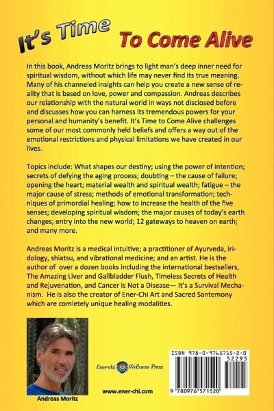 In this book the author brings to light man's deep inner need for spiritual wisdom in life and helps the reader develop a new sense of reality that is based on love, power and compassion. He describes our relationship with the natural world in detail and discusses how we can harness its tremendous powers for our personal and mankind's benefit. It's Time to Come Alive challenges some of our most commonly held beliefs and offers a way out of the emotional restrictions and physical limitations we have created in our lives. Topics include: What shapes our Destiny; using the power of intention; secrets of defying the aging process; doubting - the cause of failure; opening the heart; material wealth and spiritual wealth; fatigue - the major cause of stress; methods of emotional transformation; techniques of primordial healing; how to increase health of the five senses; developing spiritual wisdom; the major causes of today's earth changes; entry into the new world; twelve gateways to heaven on earth; and many more. Andreas Moritz is a Medical Intuitive and practitioner of Ayurveda, Iridology, Shiatsu and Vibrational Medicine. Author of The Amazing Liver & Gallbladder Flush, Timeless Secrets of Health and Rejuvenation, and Time to Wake Up. Founder of the innovative healing systems, Ener-Chi Art and Sacred Santèmony - Divine Chanting for Every Occasion.