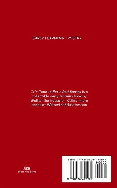It's Time to Eat a Red Banana is a collectible early learning book by Walter the Educator suitable for all ages belonging to Walter the Educator's Time to Eat Book Series. Collect more books at WaltertheEducator.com