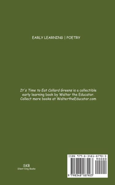 It's Time to Eat Collard Greens is a collectible early learning book by Walter the Educator suitable for all ages belonging to Walter the Educator's Time to Eat Book Series. Collect more books at WaltertheEducator.com