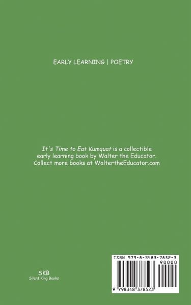 It's Time to Eat Kumquat is a collectible early learning book by Walter the Educator suitable for all ages belonging to Walter the Educator's Time to Eat Book Series. Collect more books at WaltertheEducator.com