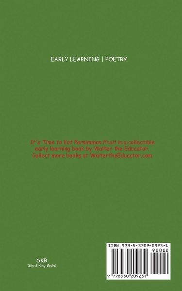 It's Time to Eat Persimmon Fruit is a collectible early learning book by Walter the Educator suitable for all ages belonging to Walter the Educator's Time to Eat Book Series. Collect more books at WaltertheEducator.com