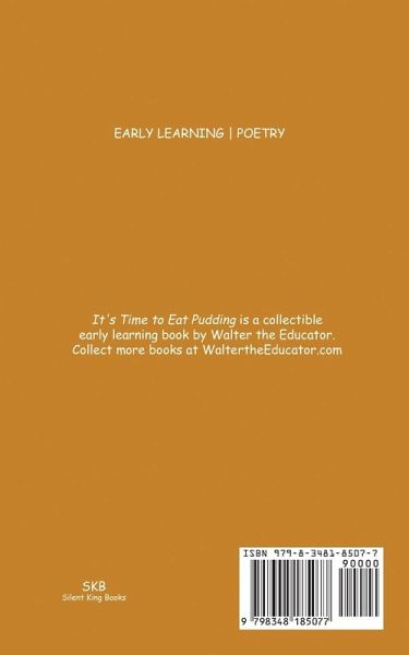 It's Time to Eat Pudding is a collectible early learning book by Walter the Educator suitable for all ages belonging to Walter the Educator's Time to Eat Book Series. Collect more books at WaltertheEducator.com