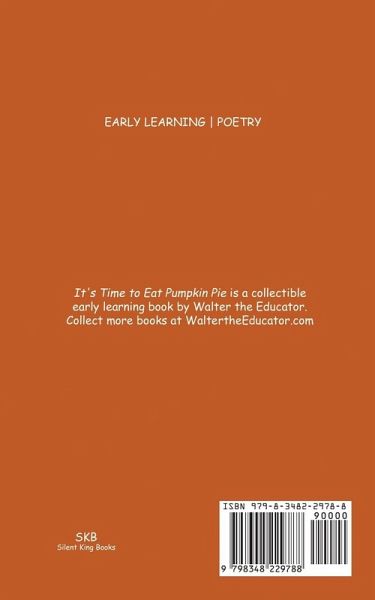 It's Time to Eat Pumpkin Pie is a collectible early learning book by Walter the Educator suitable for all ages belonging to Walter the Educator's Time to Eat Book Series. Collect more books at WaltertheEducator.com