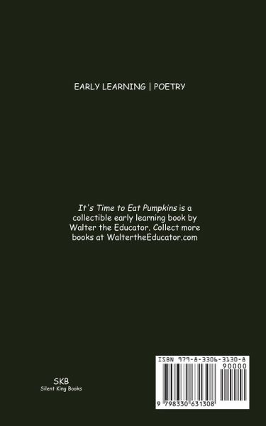 It's Time to Eat Pumpkins is a collectible early learning book by Walter the Educator suitable for all ages belonging to Walter the Educator's Time to Eat Book Series. Collect more books at WaltertheEducator.com
