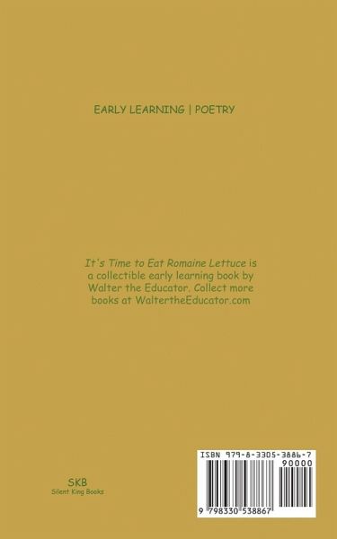 It's Time to Eat Romaine Lettuce is a collectible early learning book by Walter the Educator suitable for all ages belonging to Walter the Educator's Time to Eat Book Series. Collect more books at WaltertheEducator.com