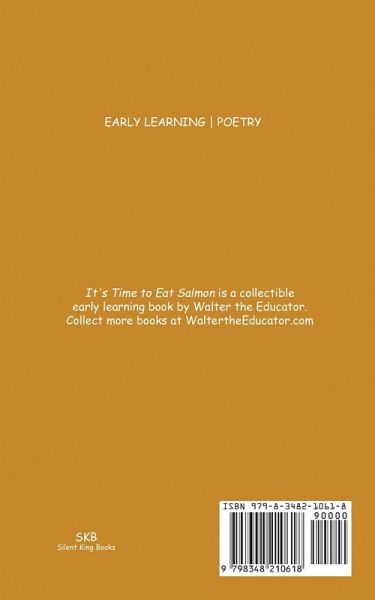 It's Time to Eat Salmon is a collectible early learning book by Walter the Educator suitable for all ages belonging to Walter the Educator's Time to Eat Book Series. Collect more books at WaltertheEducator.com