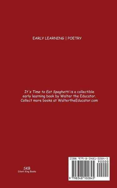 It's Time to Eat Spaghetti is a collectible early learning book by Walter the Educator suitable for all ages belonging to Walter the Educator's Time to Eat Book Series. Collect more books at WaltertheEducator.com