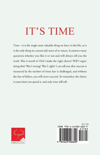 Time-it is the single most valuable thing we have in this life, as it is the only thing we cannot add more of or return. It answers many questions whether you like it or not and will always tell you the truth. Was it worth it? Did I make the right choice? Will I regret doing this? Was I wrong? Was I right? I can tell you this: success is measured by the number of times fear is challenged, and without the fear of failure, you will never succeed. So remember, the choice is yours how you spend it, and only time will tell.