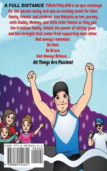 It's TRIATHLON time! A full distance triathlon is an epic challenge for the person racing, but also an exciting event for their family, friends, and children. Join Natasha on her journey with Daddy, Mommy, and little sister Kenzie as they join the triathlon family. Unlock the power of setting goals and the strength that comes from supporting each other. And always remember.Be Kind,Be Brave,And Always Believe....All things are possible!
