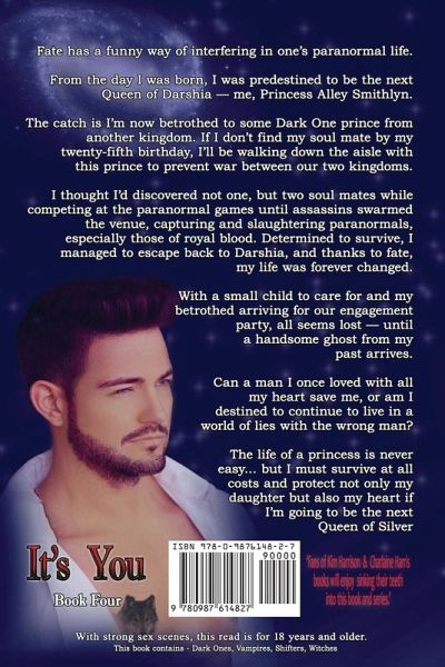 It's You Fate has a funny way of interfering in one's paranormal life. From the day I was born, I was predestined to be the next Queen of Darshia - me, Princes Alley Smithlyn. The catch is I'm now betrothed to some Dark One prince from another kingdom. If I don't find my soul mate by my twenty-fifth birthday, I'll be walking down the aisle with this prince to prevent a war between our two kingdoms. I thought I'd discovered not one, but two soul mates while competing at the paranormal games until assassins swarmed the venue, capturing and slaughtering paranormals, especially those of royal blood. Determind to survive, I managed to get back to Darshia, and thanks to fate, my life was changed forever. With a small child to care for and my betrothed arriving for our engagment party, all seems lost - until a handsome ghost from my past arrives. Can a man I once loved with all my heart save me? Or, am I destined to continue to live in a world of lies with the wrong man? The life of a princess is never easy... but I must survive at all costs and protect not only my daughter but also my heart if I am going to be the next Queen of Silver. This book contains: coarse language, adult sexual themes, blood, vampires, witches, werewolves, young love, violence, nudity, handsome - muscled men, certain scenes may cause triggers. A kick arse independent female - who will do anything to protect the ones she loves. This book is written and edited in Australian/UK English. Which means spelling will be different. If you are offended by any of these themes, this book is not for you. Books in the series - The Guy Next Door Dark Surprises You Never Know It's You What You Know