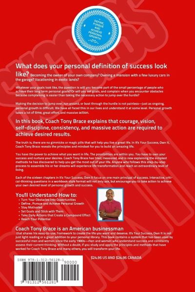 Coach Tony Brace is an American businessman that shares his easy-to-use, framework to create the life you want and deserve. "It's Your Success, Own It" is not just light reading or a great addition to your personal library. This book contains a system that has been used by successful men and women since the early 1900s. Men and Women who understand success and constantly assess their current thinking. Without a doubt, if you study and apply the principles and methods that have worked for Coach Tony Brace and many others, you will transform your life. "You have the power to achieve what you want in life. The possibilities are within you. You have to own your success and nurture your desires. I have tried, measured,and now I am explaining the simplest methods I have discovered to help you get the most out of your life. Anyone who follows this step-by-step process will assemble his or her dreams and will experience life transformation." -Coach Tony Brace