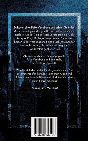 Er ist so nervig ...Er treibt mich in den Wahnsinn ...Aber ich tue es ihm gleich ...Zwischen einer Fake-Verlobung und echten Gefühlen ...Mary Hemmings und Logan Baxter sind zusammen so explosiv wie TNT, da ist Ärger vorprogrammiert, als Mary anfängt, für Logan zu arbeiten. Zumal die beiden in der Vergangenheit eine Nacht miteinander verbracht haben, die beiden nur zu gut im Gedächtnis geblieben ist.Als dann auch noch eine ungeplante Fake-Verlobung im Raum steht, ist das Chaos perfekt.Werden sich die beiden für ein gemeinsames Ziel zusammenraufen können? Kann man Arbeit und Privatleben dauerhaft trennen? Und wer wird den ersten Schritt machen?It's your turn, Mr. CEO!