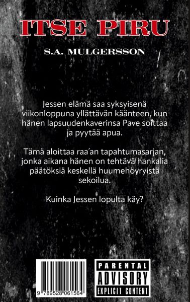 S.A. Mulgersson on uusi kirjailijatulokas tällä hänen toisella teoksellaan. Ensimmäinen kirja, ja omaelämäkertansa nimeltään "Kaunakirjallisuutta" jatkoksi tulee tämä fiktiivinen rikosromaani "Itse Piru", joka pitää otteessaan koko matkan ajan.