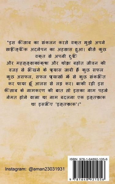 This book is a part of my literary work done in past two years . All poems in this collection are part of me as I have lived them. Name of the book is 'Coincidence' in english which justifies everything happening to me. Hope everyone enjoys it .