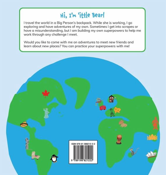 'ittle Bear travels the world in a Big Person's suitcase. While the Big Person works, she goes out on adventures of her own. As she travels, she experiences the wonderful things that one does when traveling (new places, exciting sights, new food, and new friends). She also experiences a challenge that she solves through three superpowers that she has the potential for and develops within herself. These superpowers enable her to interact effectively across cultures, religions, and communities and are based on research in organizational psychology and intercultural collaboration. This is the…mehr